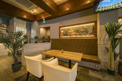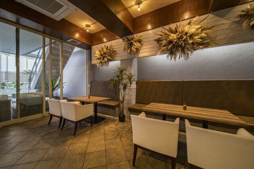 【街中にある隠れ家リゾート地】心斎橋駅徒歩3分に位置する当店はビルの屋上に位置しています。道を歩いていても中々当店にお気づきにならないかもしれません。しかし、階段を上がるとそこにはあなただけの隠れ家空間が…!ランチはもちろんカフェ、ディナーまでお好きな時間帯にごゆっくりお過ごしいただけます◎